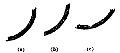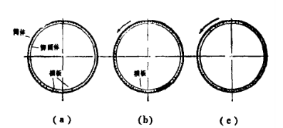 模板支撐要與筒體垂直,與軸線平行,澆注第一檔位置要在筒體底部中央,下一檔轉窯時間要控制。圖3ac兩種情況都會影響澆注襯料的整體強度。而圖3b中接縫能獲得整體強度最大效果。