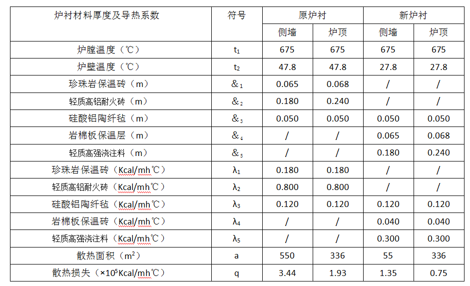 表2 改進前后輻射室爐襯散熱損失計算結果對比