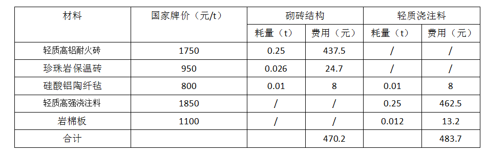 (1)兩種爐襯耗材的費用對比