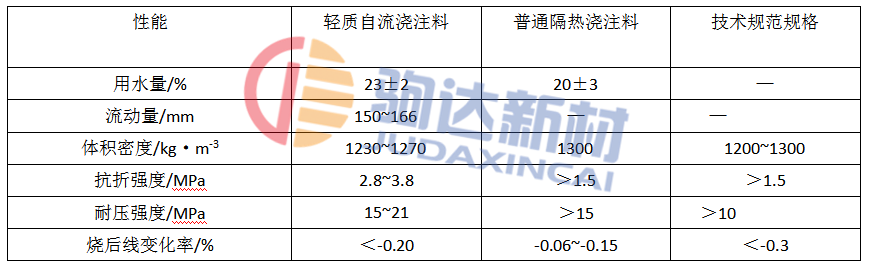 自流澆注料的性能