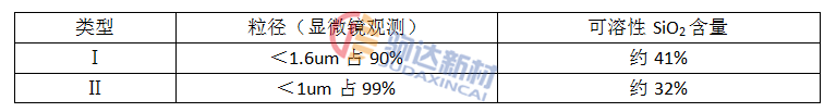 試驗中發現,同樣配方,采用不同類型的SiO2微粉,強度波動在15—30MPa,可見SiO2微粉的性能對質量有著很大的影響SiO2(Ⅰ)呈灰色,遇水后手感粘性大;SiO2(Ⅰ)呈白色,加水后,手感粘性較小,測其粒度組成和水中可溶物的含量,結果示于表3。經分析,可溶物是SiO2