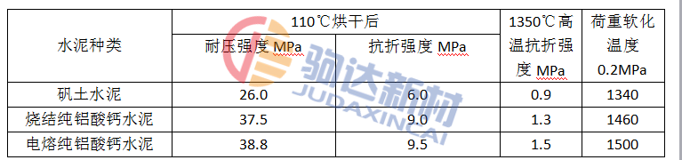 以礬土水泥、電熔和燒結的純鋁酸鈣水泥分別與高鋁礬土熟料和其它添加劑配料。澆灌成型,制成試樣,其性能示于表4。
