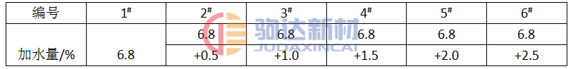 表2  試樣編號與加水量對應表