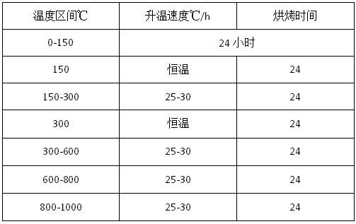 耐火澆注料的烘爐曲線主要是依據窯爐結構、耐火澆注料性能、內襯厚度以及用水量來設定。中間包主要有矩形中間包和三角形中間包,其中應用較為廣泛的是矩形中間包,矩形中間包永久層采用的耐火澆注料一般為高鋁耐火澆注料和莫來石自流澆注料。具體的中間包烘爐方案如下: