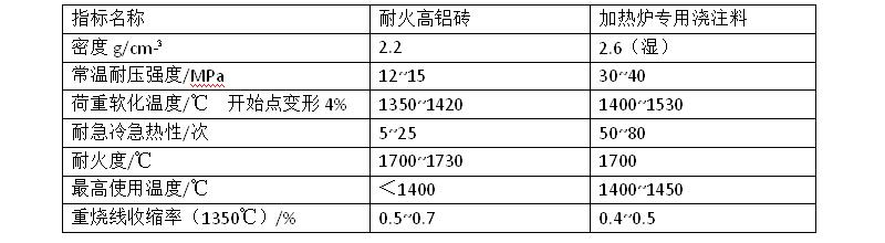 (2)加熱爐專用澆注料爐體易于修補。耐火磚砌筑的爐頂修補起來很困難,常因局部燒損塌落而不得不全拆重筑。而加熱爐專用澆注料預制爐頂整體性好,高溫強度大,即使局部剝落也不致引起爐頂塌陷,且修補容易,同時也延長了爐頂的壽命。